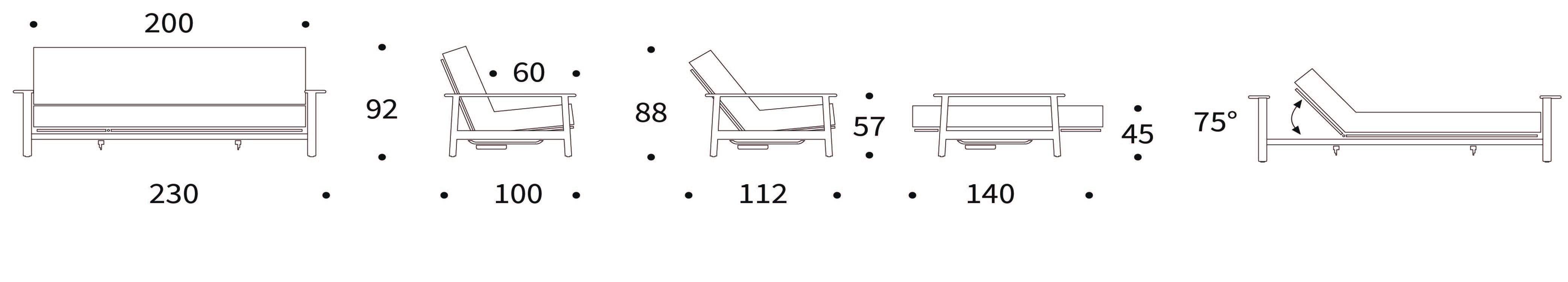 | Sofabreite | 230 cm |